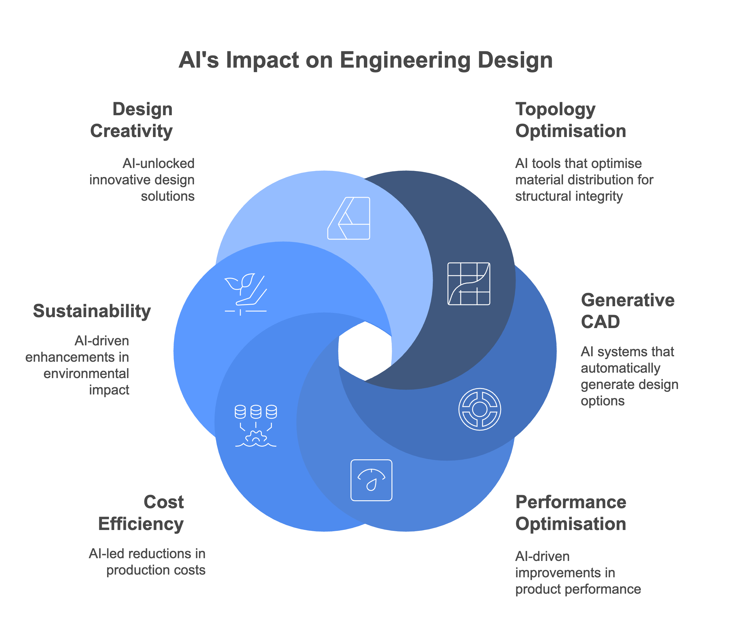 AI-driven design tools including topology optimisation and generative computer-aided design enable engineers to explore vastly larger design spaces and automatically generate optimised solutions.
