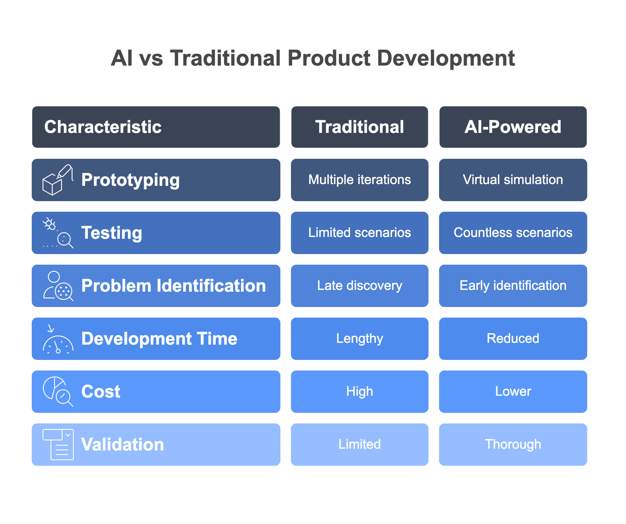 AI-powered digital twins and simulation platforms enable comprehensive virtual testing and validation of products before physical prototypes are built, dramatically reducing development time and costs.