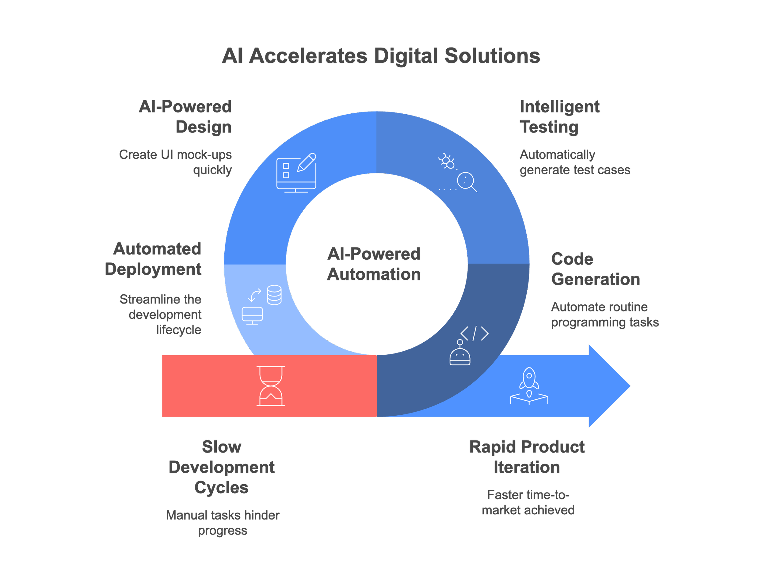 Software Development, User Experience Design, Quality Assurance, Product Testing, and Digital Product Management capabilities are enhanced through automation and intelligent development assistance.